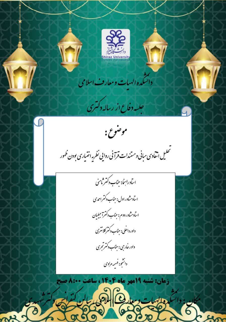 جلسه دفاع دکتری (گروه علوم قرآن): فهیمه مرادی