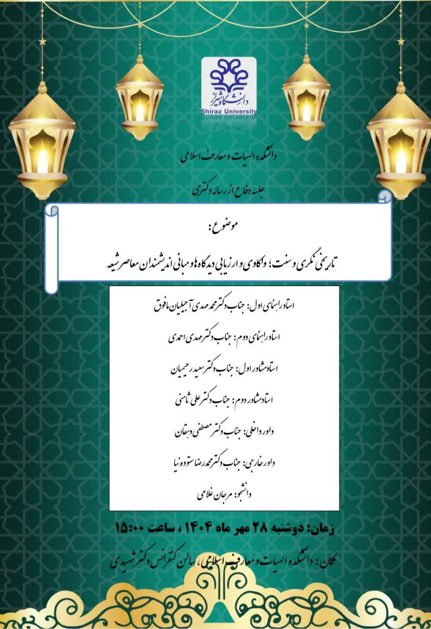 جلسه دفاع کارشناسی ارشد (گروه فلسفه و کلام اسلامی). ارائه دهنده: زینب علیشاهی