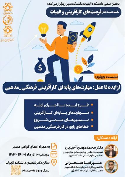 نشست چهارم: از ایده تا عمل مهارت‌های پایه‌ای کارآفرینی فرهنگی–مذهبی اهداف کلیدی نشست: