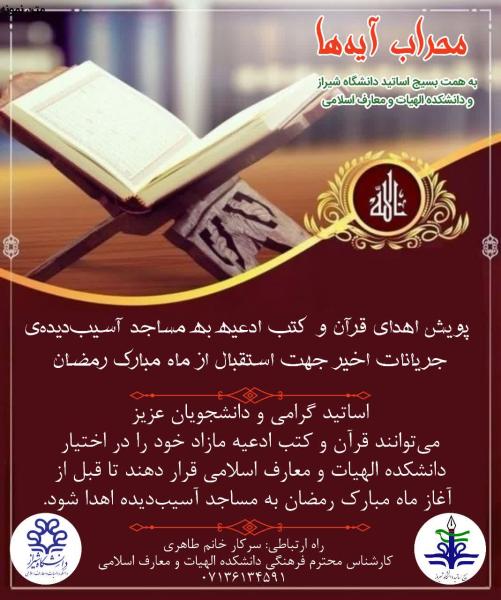 بسیج اساتید دانشگاه شیراز و دانشکده الهیات و معارف اسلامی دانشگاه شیراز از اساتید گرامی و دانشجویان عزیز دعوت میکند با مشارکت در این حرکت معنوی، در بازسازی سرمایههای عبادی و فرهنگی مساجد سهیم شوند.